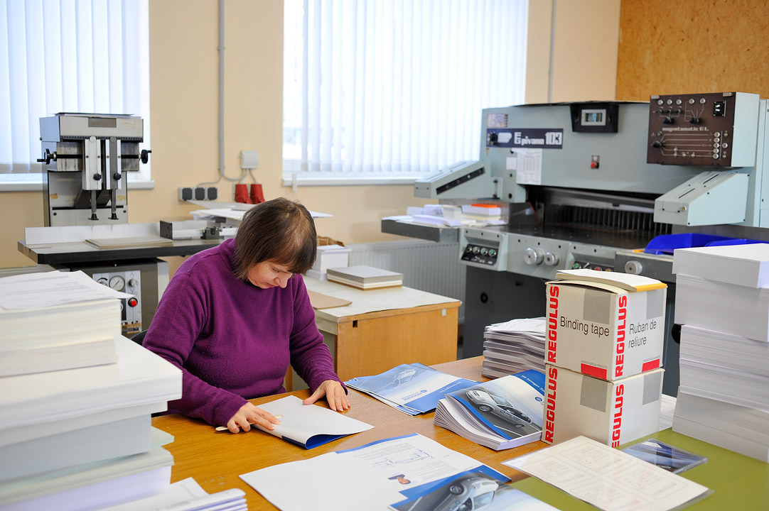 Für alle unsere Druckerzeugnisse bieten wir eine breite Palette an Endfertigungsprodukten: Schneiden, falzen und zusammentragen, Lochen, Rückenstich- Klammerheftung, Klebebindung und postversandfertige Verpackung.