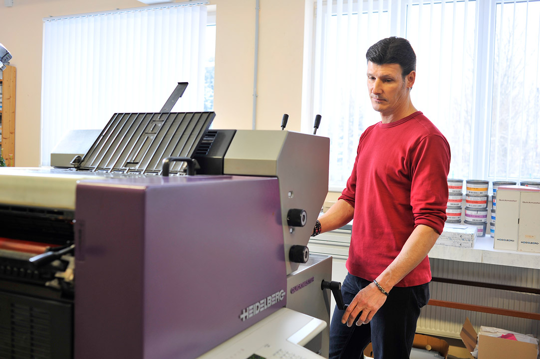 Mit unseren beiden Heidelberg Offsetmaschinen drucken wir Ihre geschätzten Aufträge schnell, preisgünstig und vor allem in höchster Qualität. Briefpapier, Rechnungen, Visitenkarten, Kuverts, Flugblätter, Hochzeitskarten u.v.m. Bei uns druckt der Chef persönlich. Seine 25jährige Erfahrung im Offsetdruck garantiert Ihre Zufriedenheit.